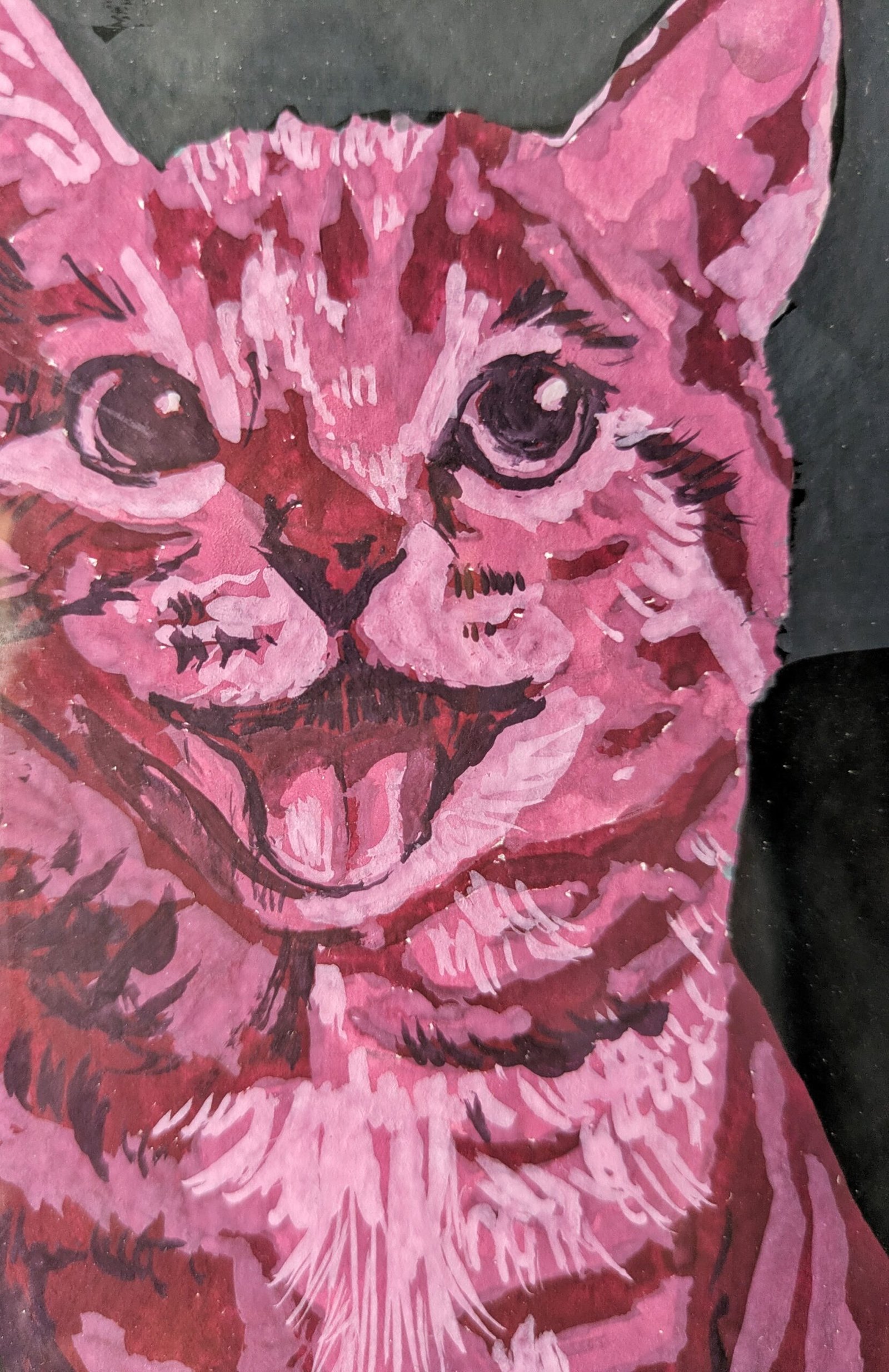 Rosie is an original cat portrait created for a dedicated cat art exhibition. Painted in expressive shades of magenta, this piece captures playful confidence and warmth.