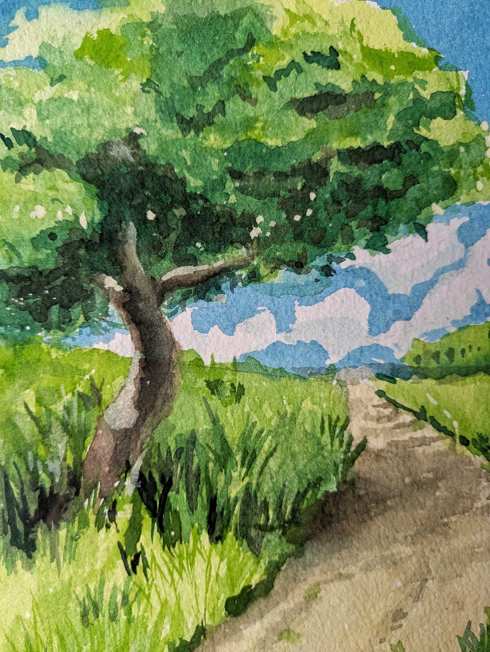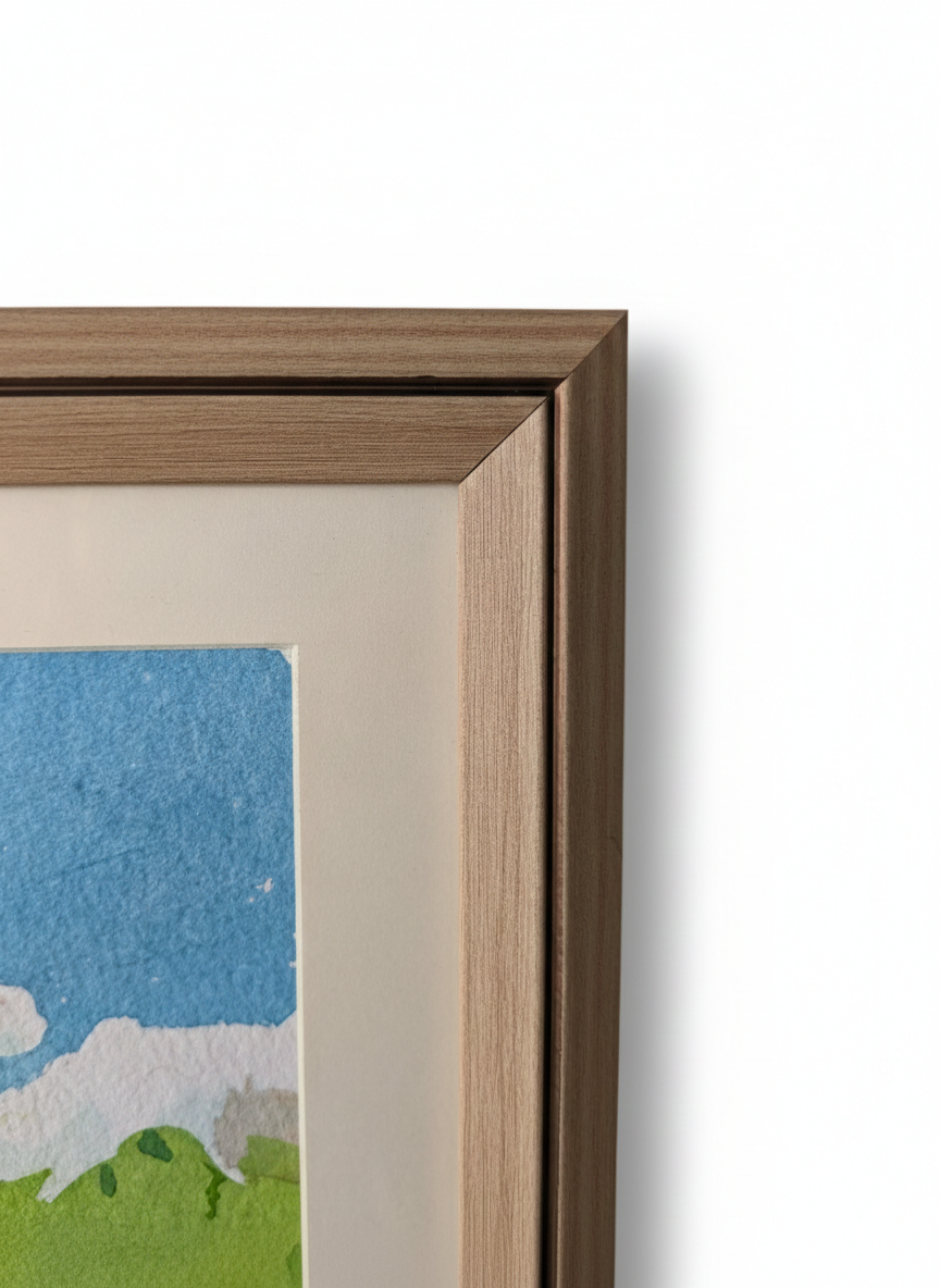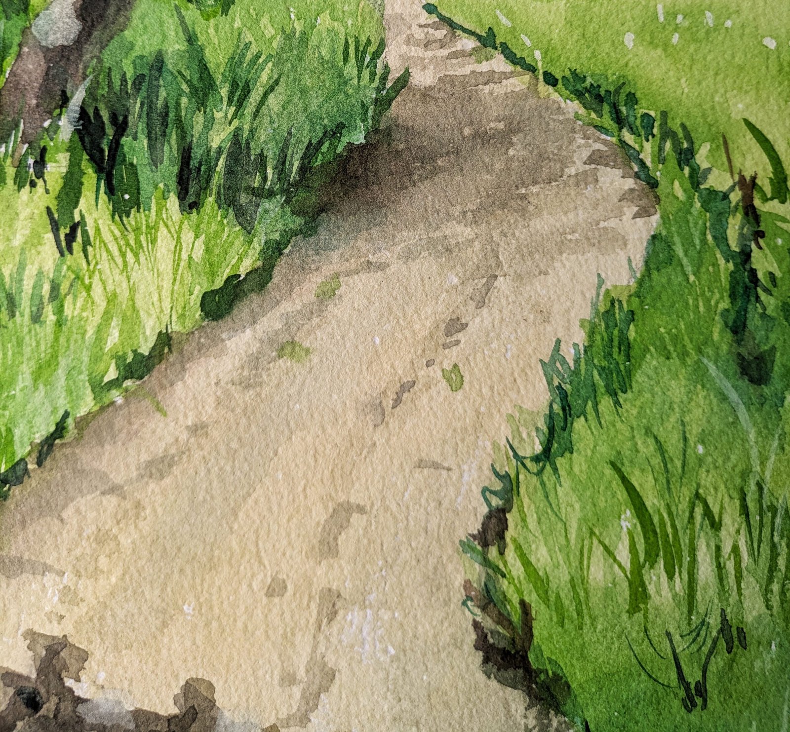 Soft Morning is an original handmade watercolour landscape inspired by gentle, storybook-style scenery. Filled with sunlight and open pathways, it captures the feeling of a quiet summer walk.